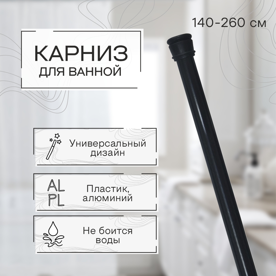 Карниз для ванной телескопический Zenfort 140-260см, черный, блистер