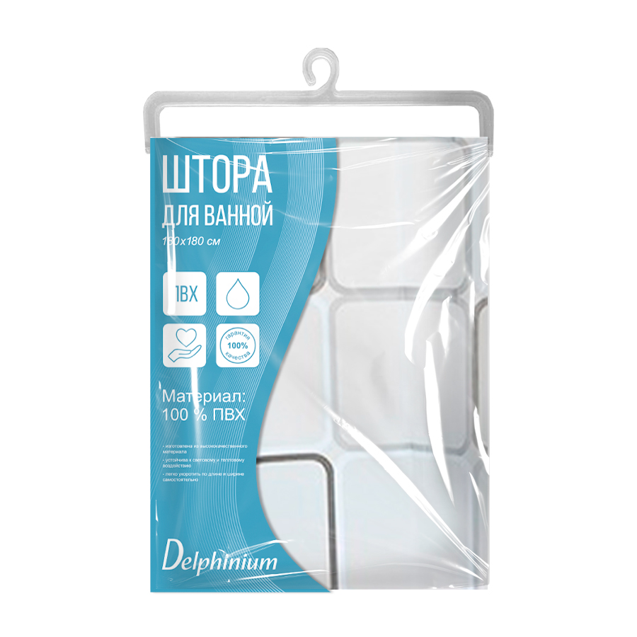 Шторы предотвращают попадание брызг воды, мыльной пены на пол и стены ванной комнаты. Штора для ванной имеет металлические люверсы (12 шт), которые защищают шторы от случайного разрыва в местах навешивания. В комплекте идут 12 пластиковых колец. Размер шторы 180 х 180см.