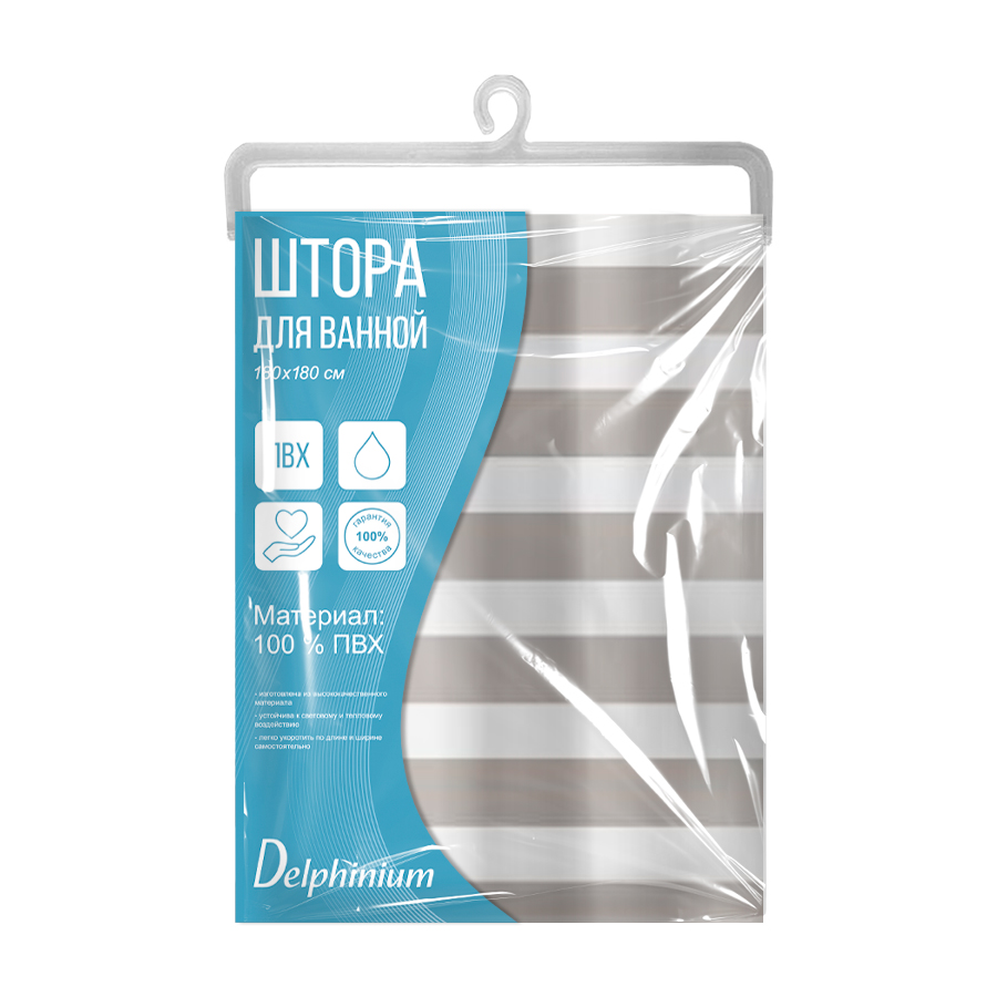 Штора для ванной Delphinium "Горизонт" ПВХ 180х200см, 12 колец, бежевый