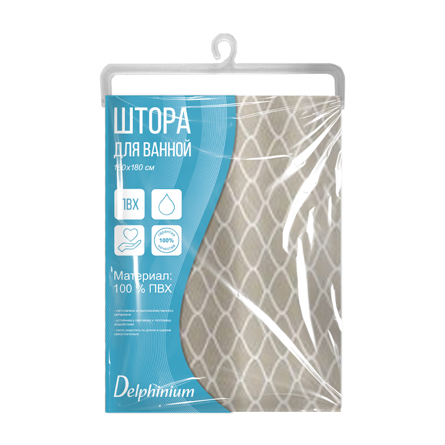 Штора для ванной Delphinium "Соната" ПВХ 180х200см, 12 колец, бежевый