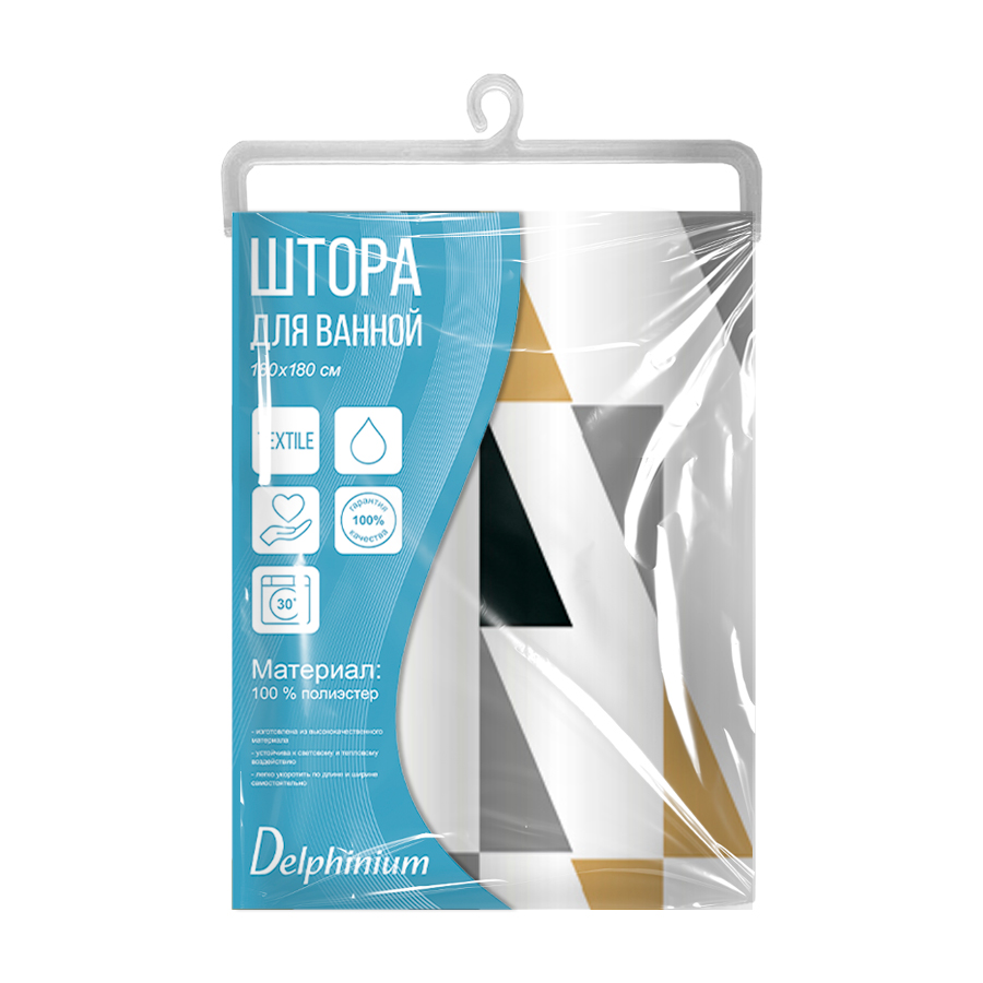 Штора выполнена из водонепроницаемого материала - полиэстер. Он плотный, прочный, обладает водоотталкивающими свойствами, идеально подойдет для ванны, не тускнеет. -