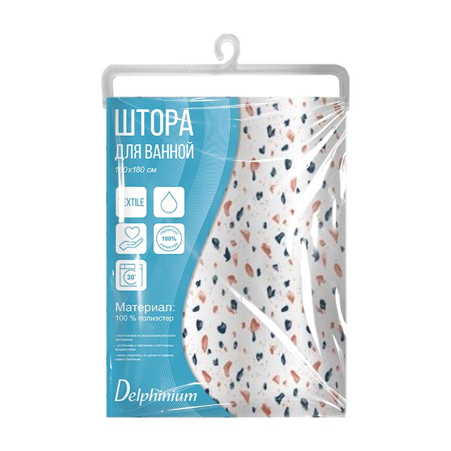 Штора выполнена из водонепроницаемого материала - полиэстер. Он плотный, прочный, обладает водоотталкивающими свойствами, идеально подойдет для ванны, рисунок не выцветает и не тускнеет. -