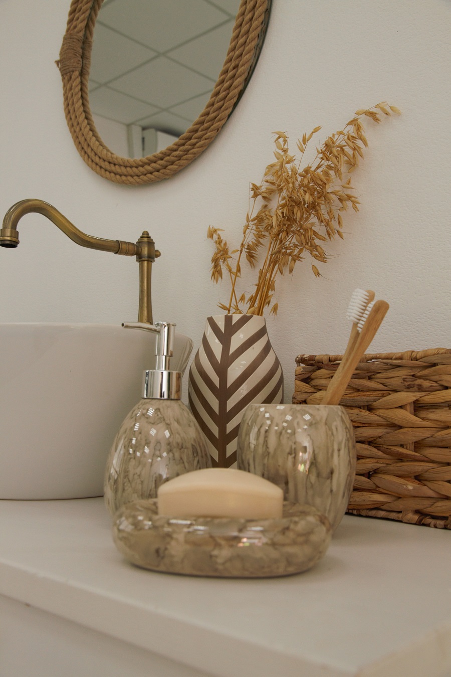 Коллекция настольных аксессуаров Оникс подчеркнёт красоту и изящество ванной комнаты, расставив верные акценты на деталях.