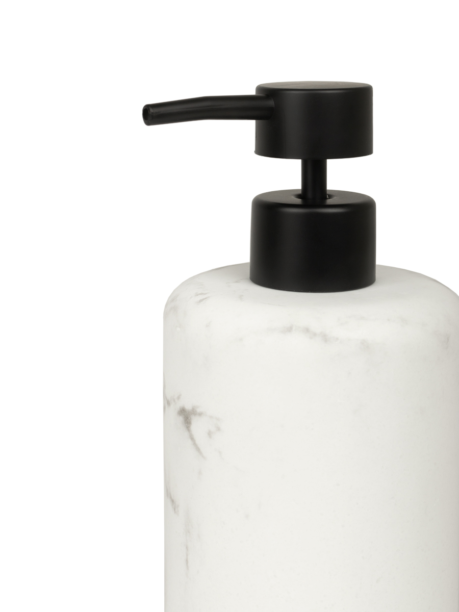Дозатор настольный для ванной комнаты цилиндрической формы, предназначен для порционной подачи мыла, шампуней и других гелеобразных жидкостей. Изготовлен из полимерного материала (полирезина). Подача моющего средства осуществляется с помощью пластиковой помпы. Влагоустойчив.