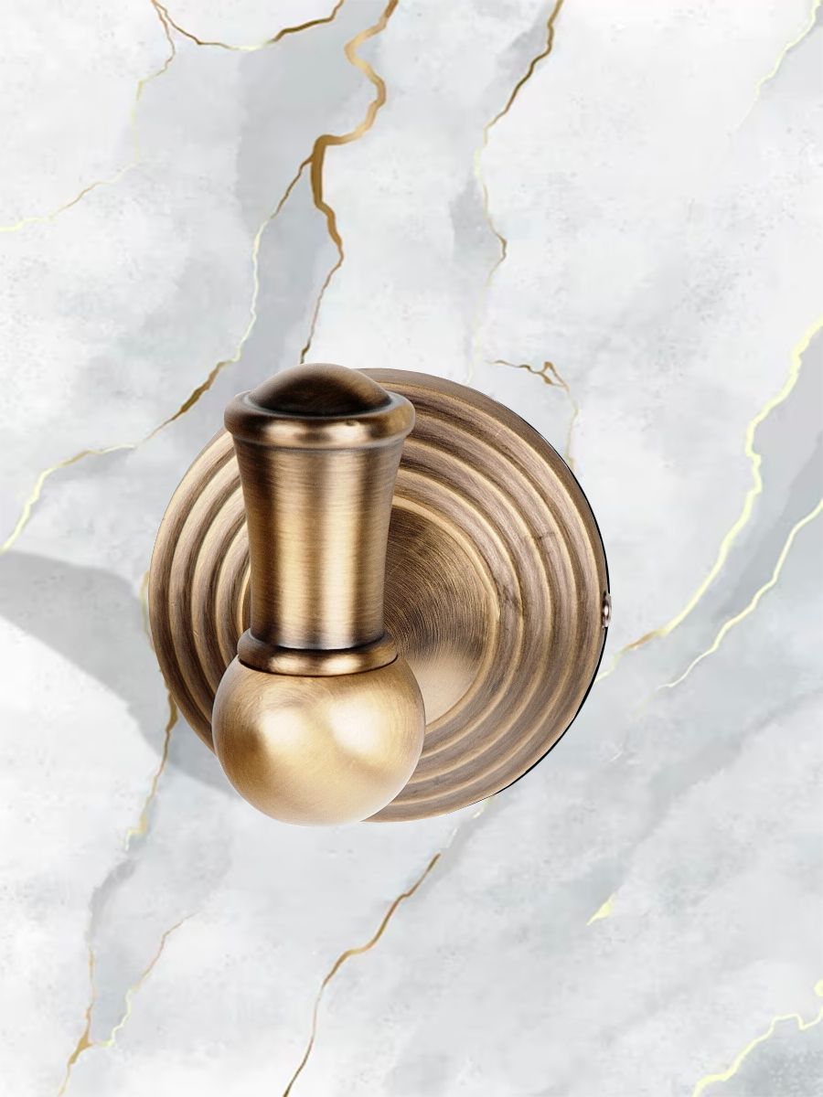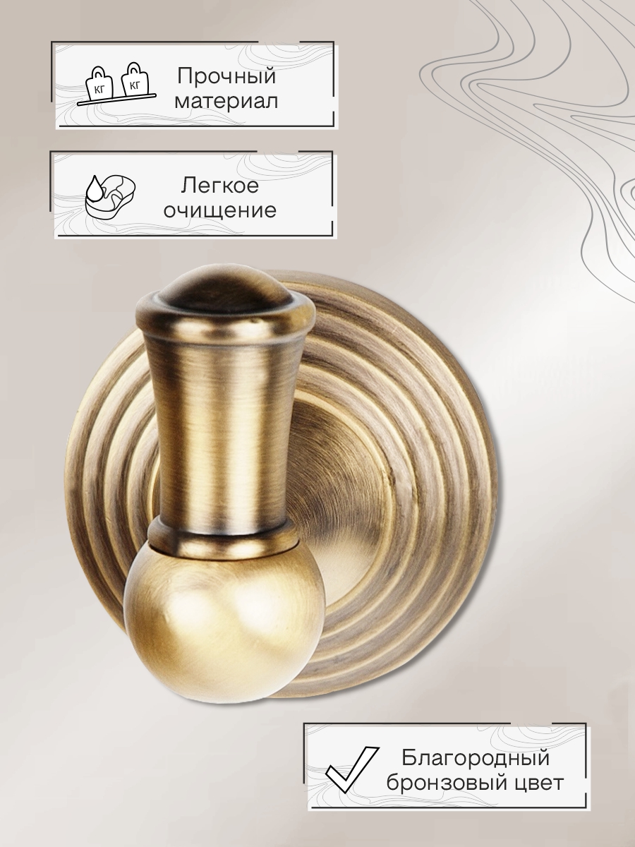 ОписаниеКрючок – оригинальной формы одинарный металлический аксессуар для ванной комнаты. Крепится на стену или иную твердую поверхность, используется для подвешивания банных полотенец, халатов, других принадлежностей. Имеет бронзовое покрытие. Крепеж входит в комплект.