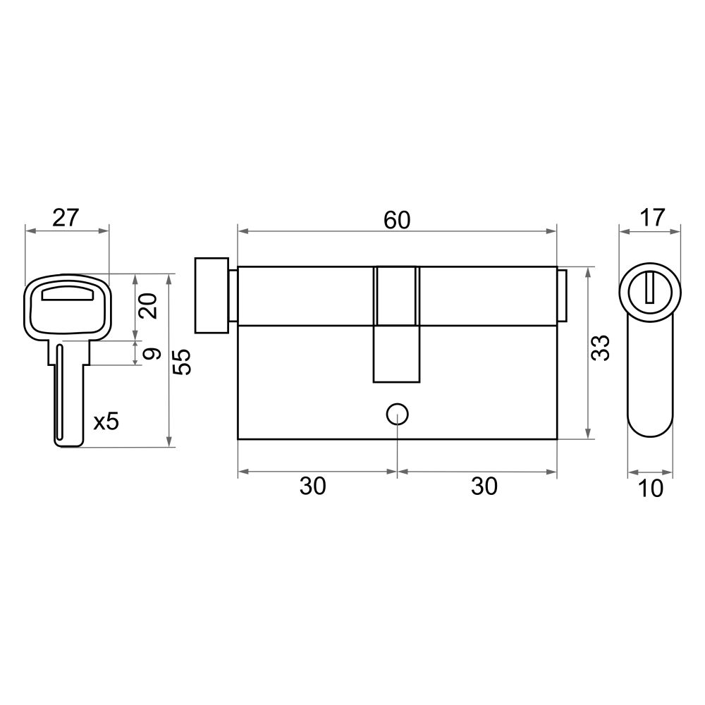 Цилиндр имеет вертушку для удобного запирания изнутри помещения без использования ключа