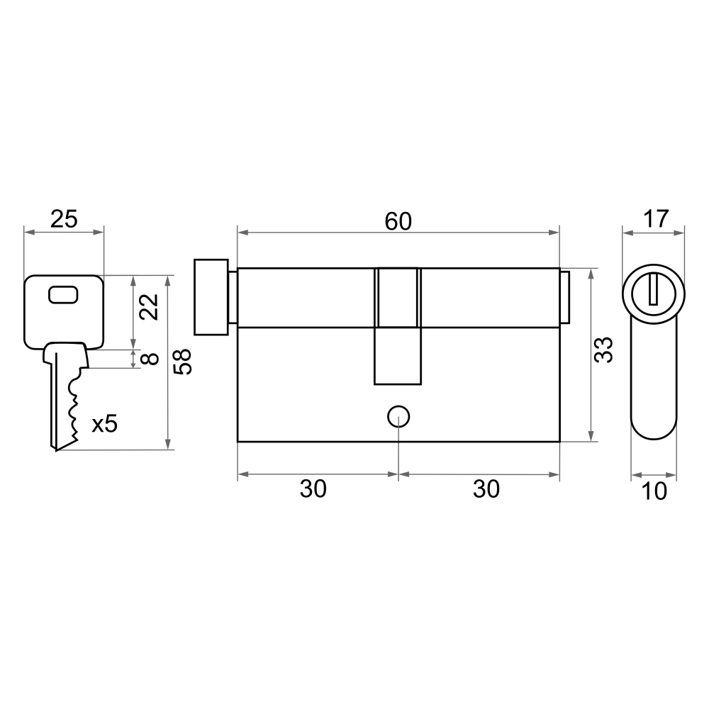Цилиндр имеет вертушку для удобного запирания изнутри помещения без использования ключа