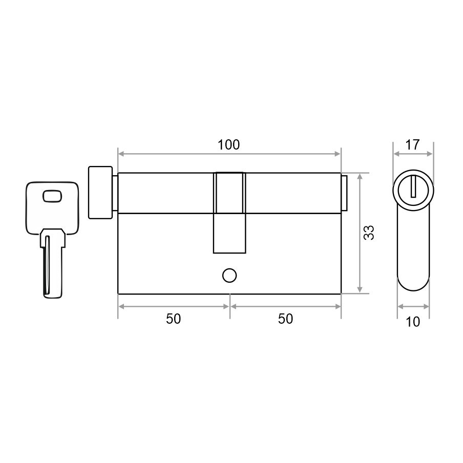 Цилиндр имеет вертушку для удобного запирания изнутри помещения без использования ключа