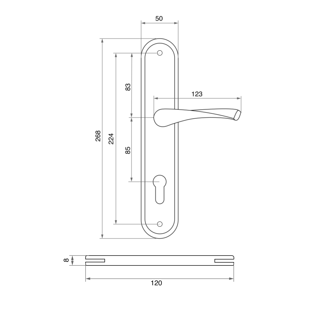 Комплектация: ручки на планке 2шт, квадрат 8х8х120 мм, стяжные винты 2шт.