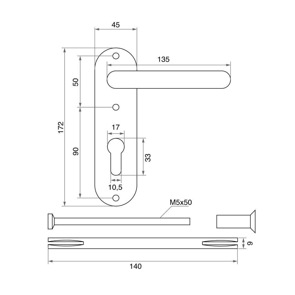 ОписаниеРучка дверная для комплектации противопожарных замков предназначена для установки на противопожарные, технические и металлические двери.