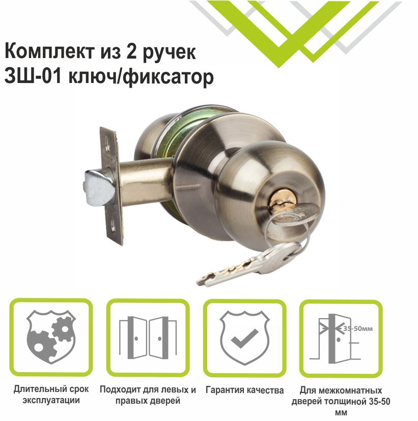Изнутри ручка закрывается на фиксатор, снаружи на ключ.