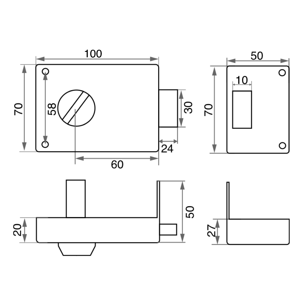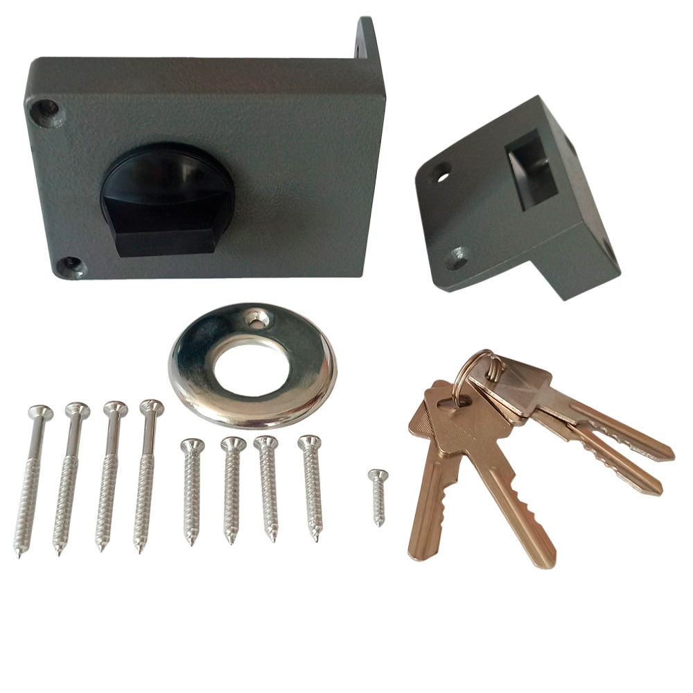 ОписаниеНакладной замок без защелки с одним ригелем прямоугольного сечения