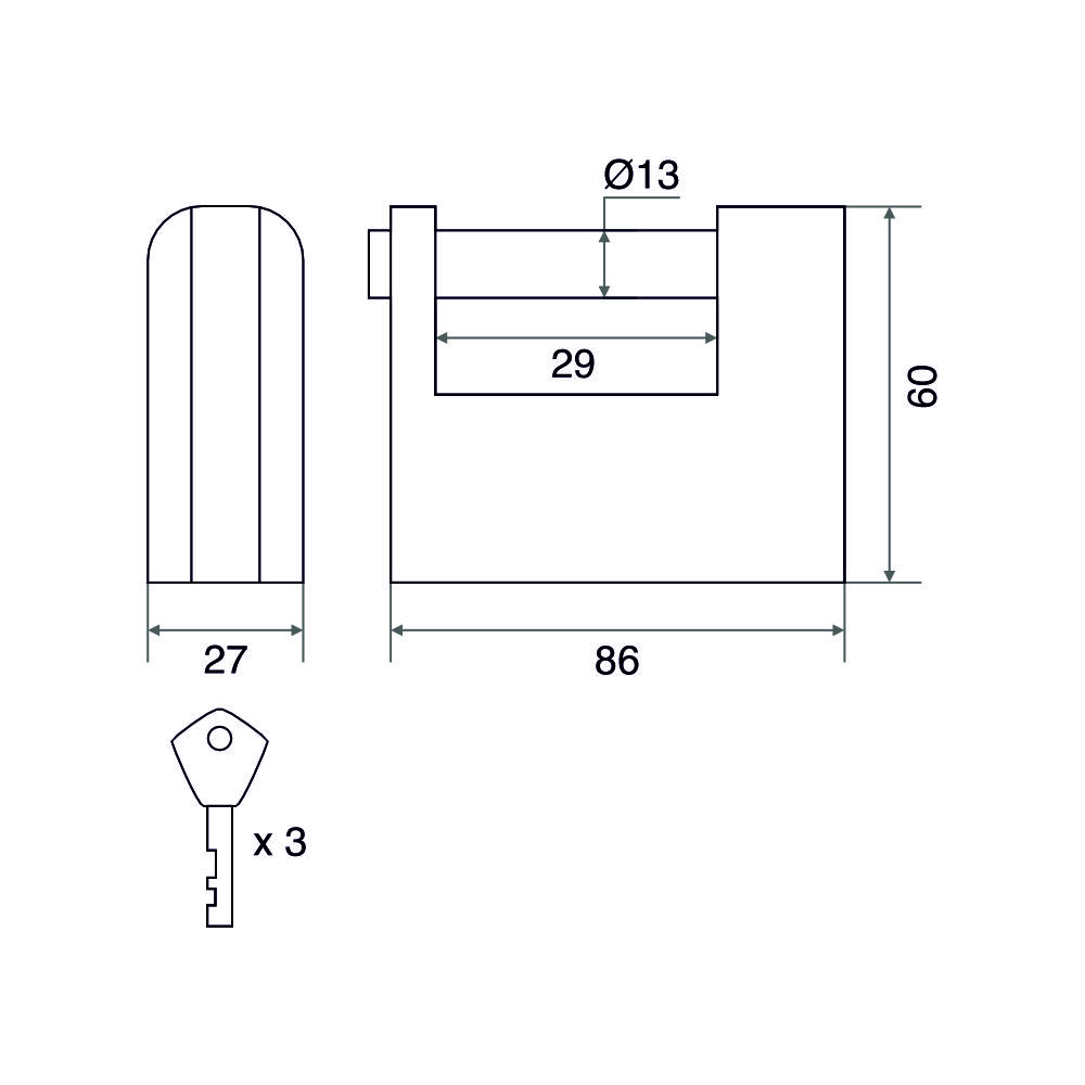 ОписаниеЗамок навесной гаражный с горизонтальной дужкой