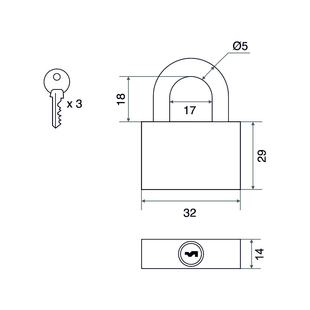 ОписаниеУниверсальный навесной замок подойдет для запирания бытовых помещений, ящика или багажа