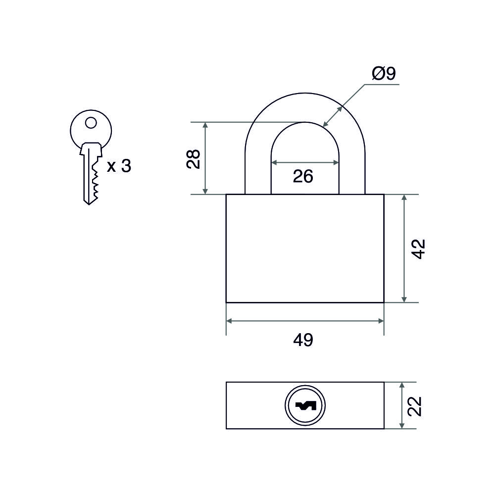 ОписаниеУниверсальный навесной замок подойдет для запирания бытовых помещений, ящика или багажа