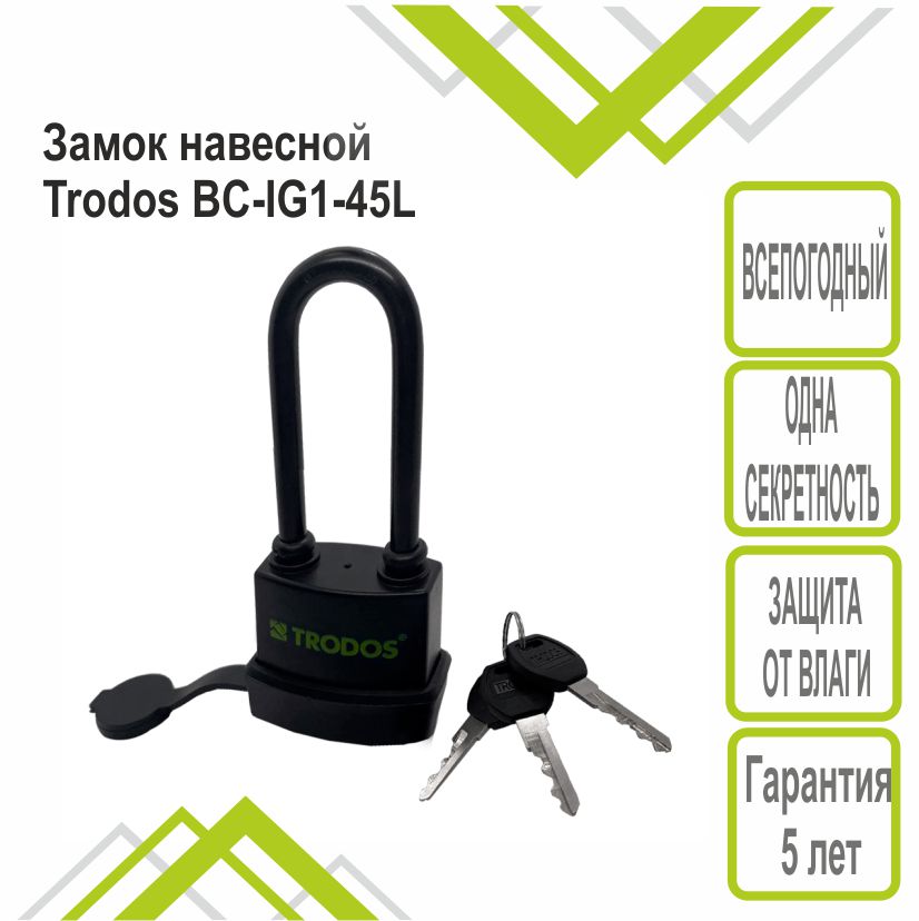 Замок навесной Trodos BC-IG1-45L чугун, всепогодный с одной секретностью