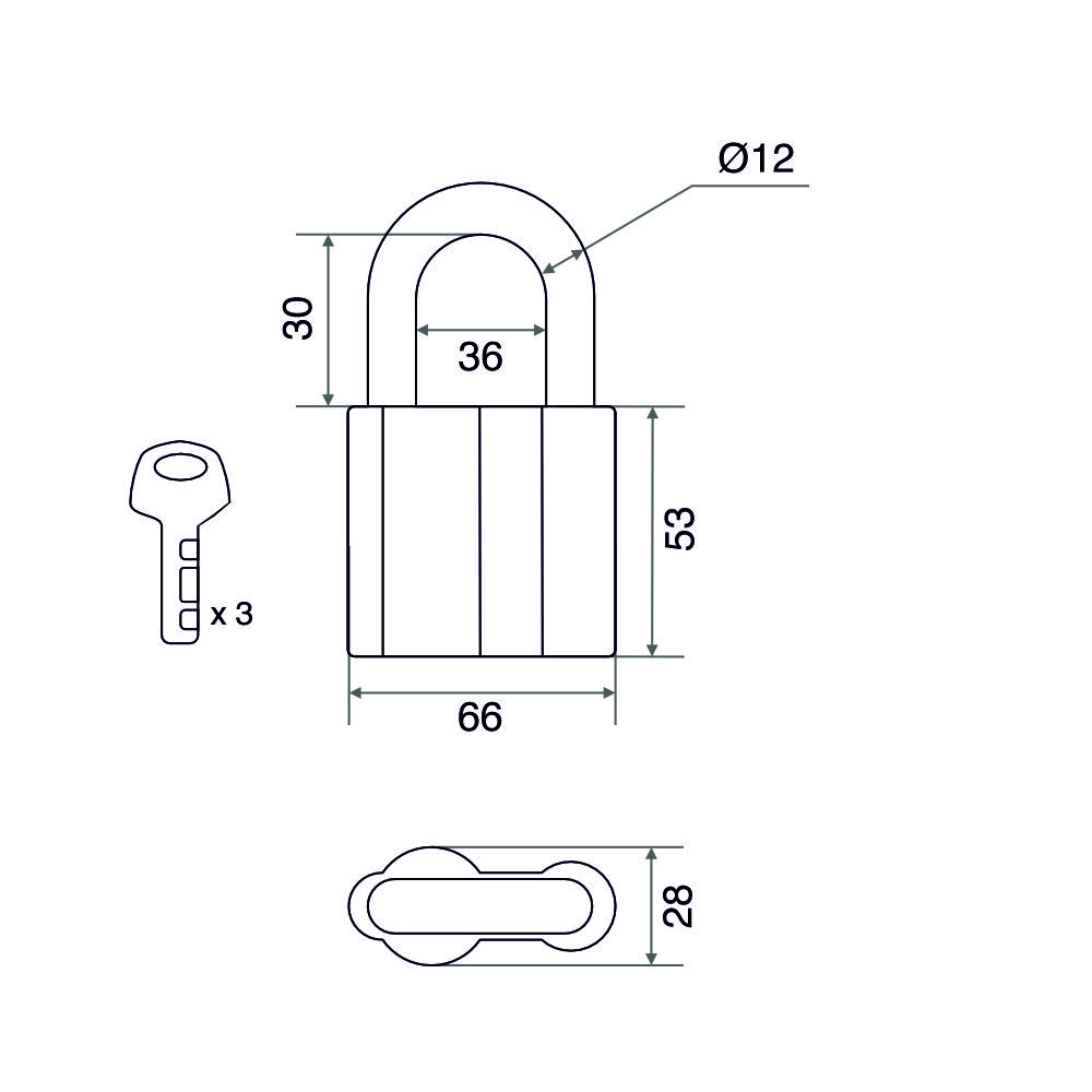 ОписаниеНавесной замок общего назначения из алюминиевого сплава с антикоррозийным покрытием - шагрень.