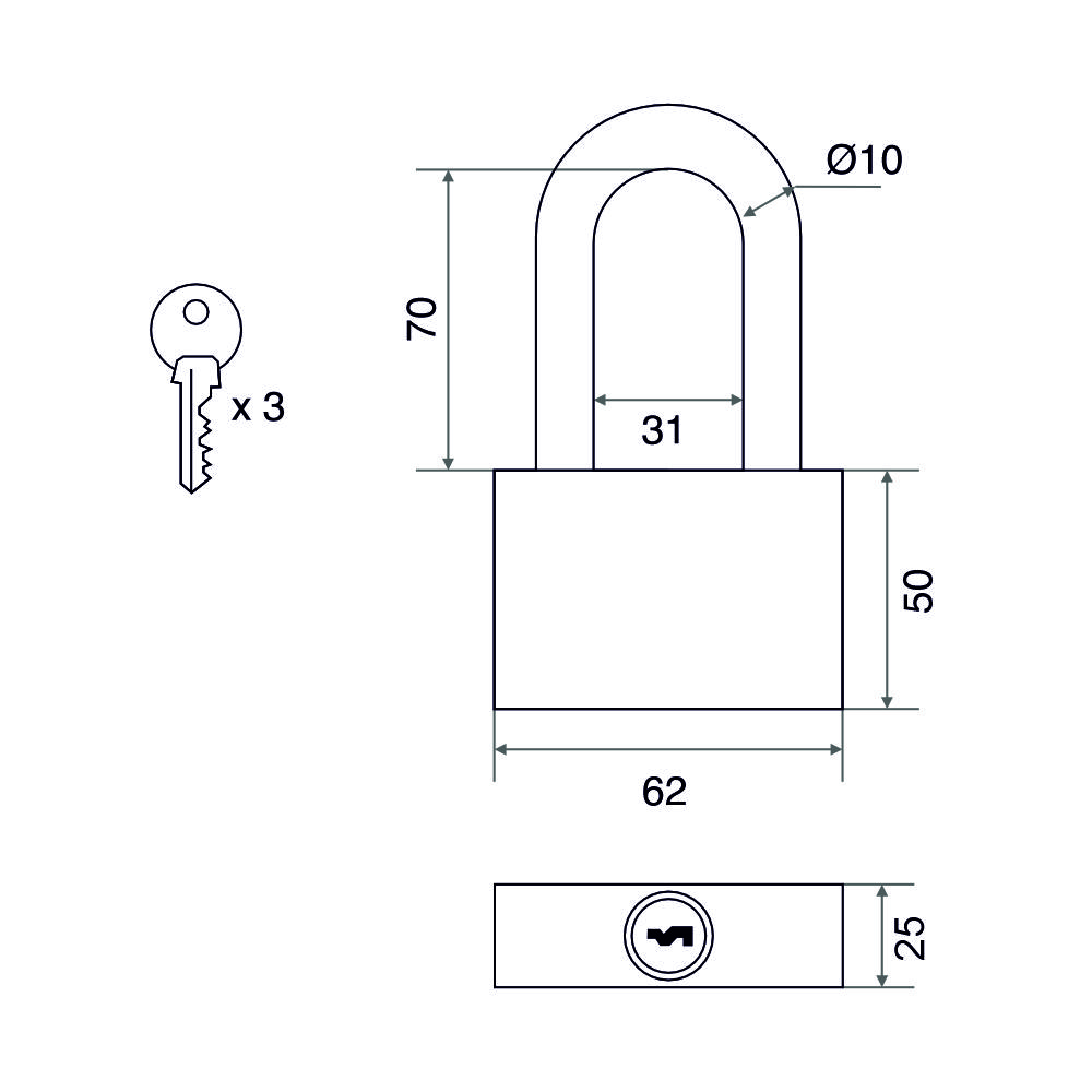 ОписаниеУниверсальный навесной замок подойдет для запирания бытовых помещений, ящика или багажа