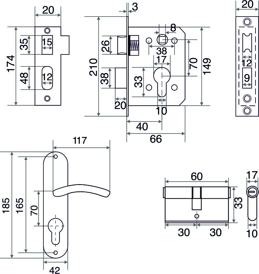 ОписаниеКомплект замка с межосевым расстоянием 70 мм предназначен для установке на деревянные межкомнатные и входные деревянные двери