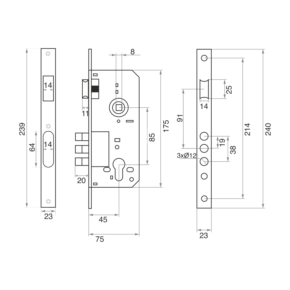 ОписаниеУниверсальный врезной замок под ручку и евроцилиндр (в комплект не входит) для деревянных межкомнатных и входных дверей с межосевым расстоянием 85 мм