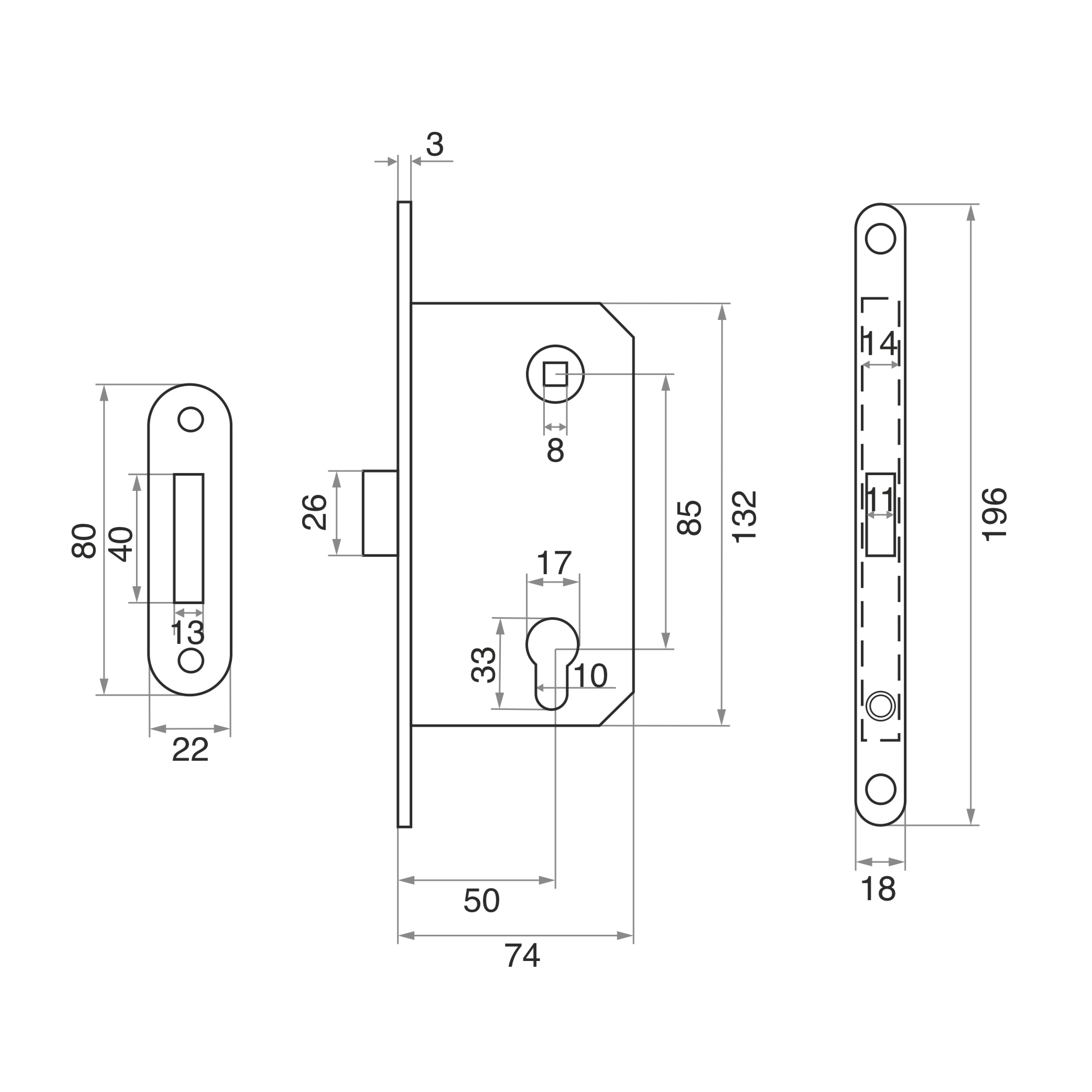 Подходит для запирания левых и правых дверей, открывающихся как внутрь, так и наружу.