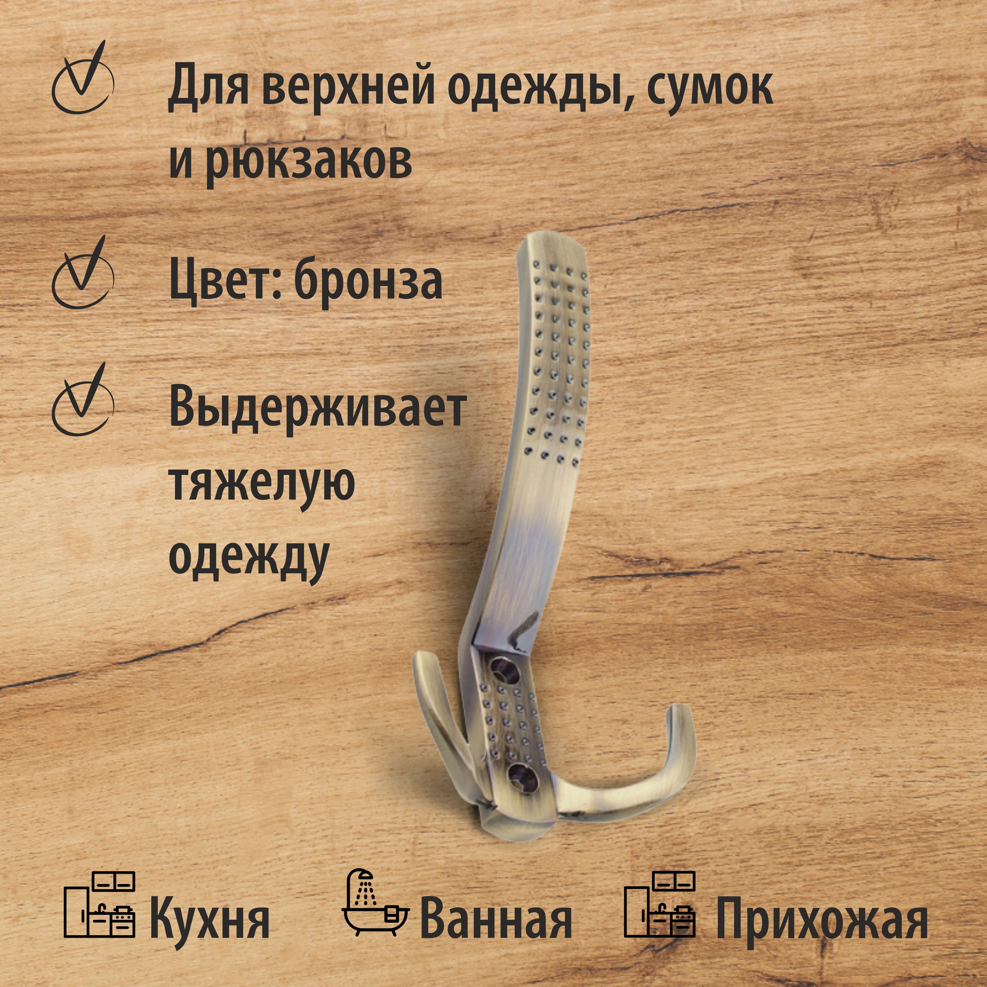 Крючок мебельный Trodos "ZY-201A" 3-рожковый, сплав ЦАМ, бронза